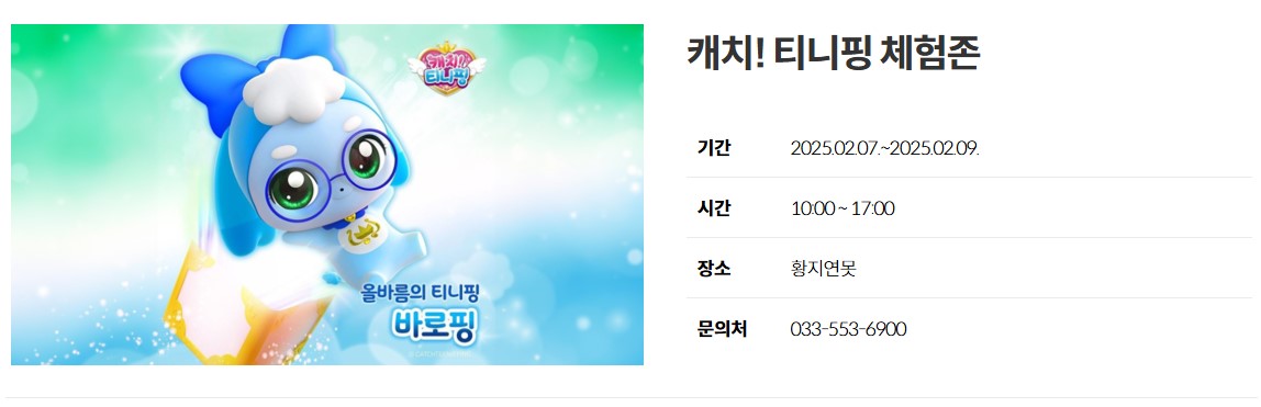 겨울방학 동안 아이들과 함께 갈만한 여행으로 태백 겨울축제, 캐치 티니핑과 함께하는 눈축제를 즐겨보시면 어떨까요? 춥지만 티니핑과 함께 다양한 볼거리 즐길거리와 신나는 체험까지! 우리 아이들 신나게 겨울방학 동안 티니핑과의 추억을 만들어 보세요.