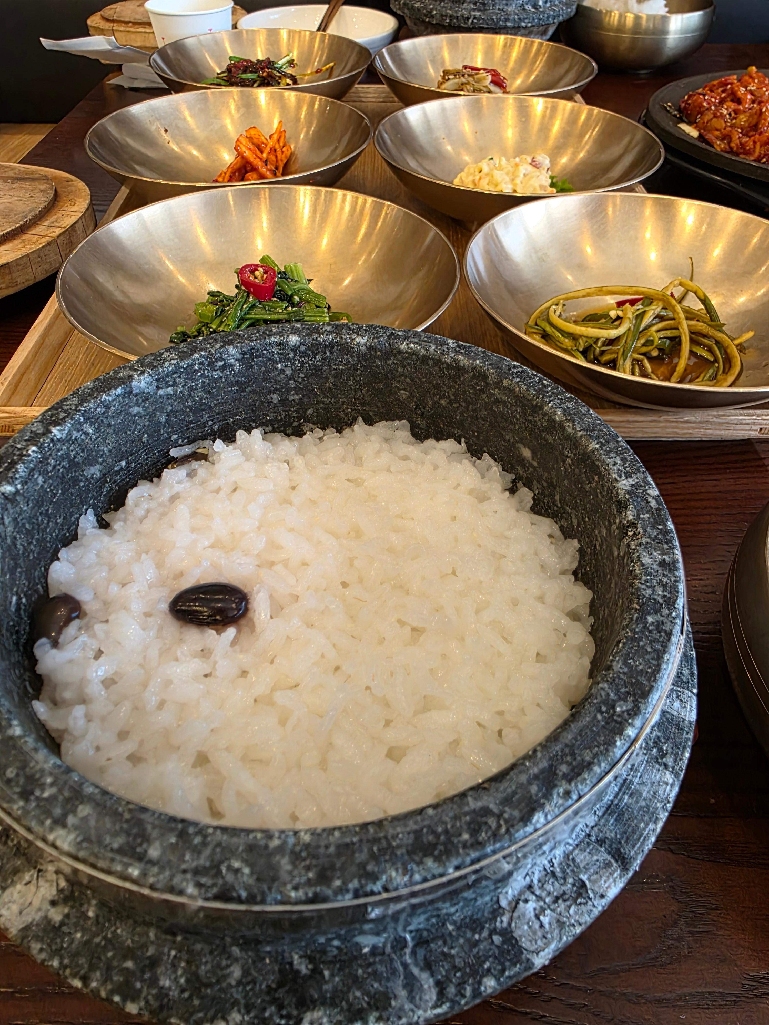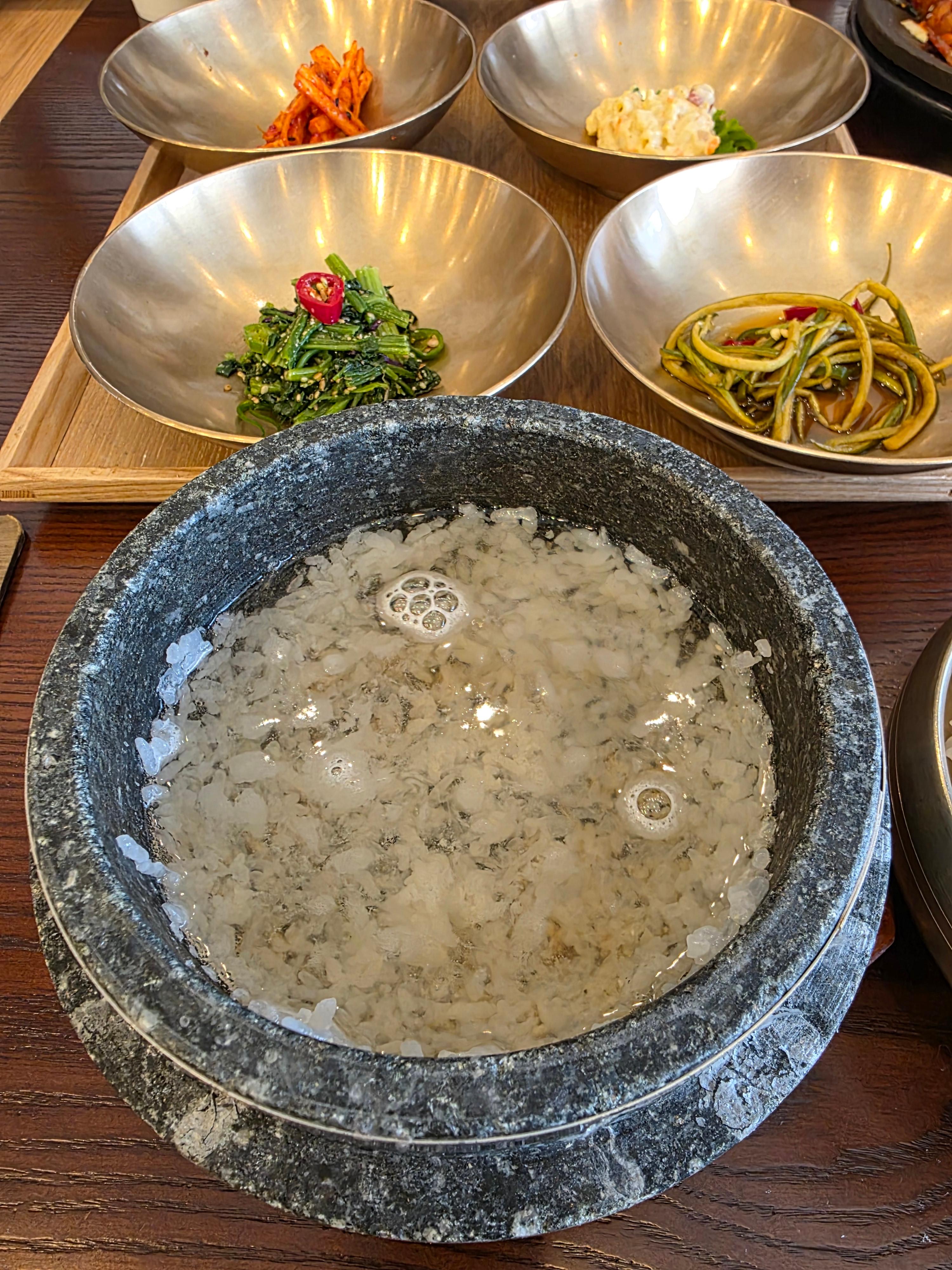 먼저 돌솥밥부터 소개할게요. 쌀밥과 보리밥이 돌솥에 따끈따끈하게 담겨 나오는데, 고소한 향이 정말 끝내줬어요. 밑반찬들과 함께 비벼 먹으니 집밥 같은 편안함이 느껴졌답니다. 밥을 다 먹고 나서 뜨거운 물을 부어 만든 누룽지도 별미였어요!