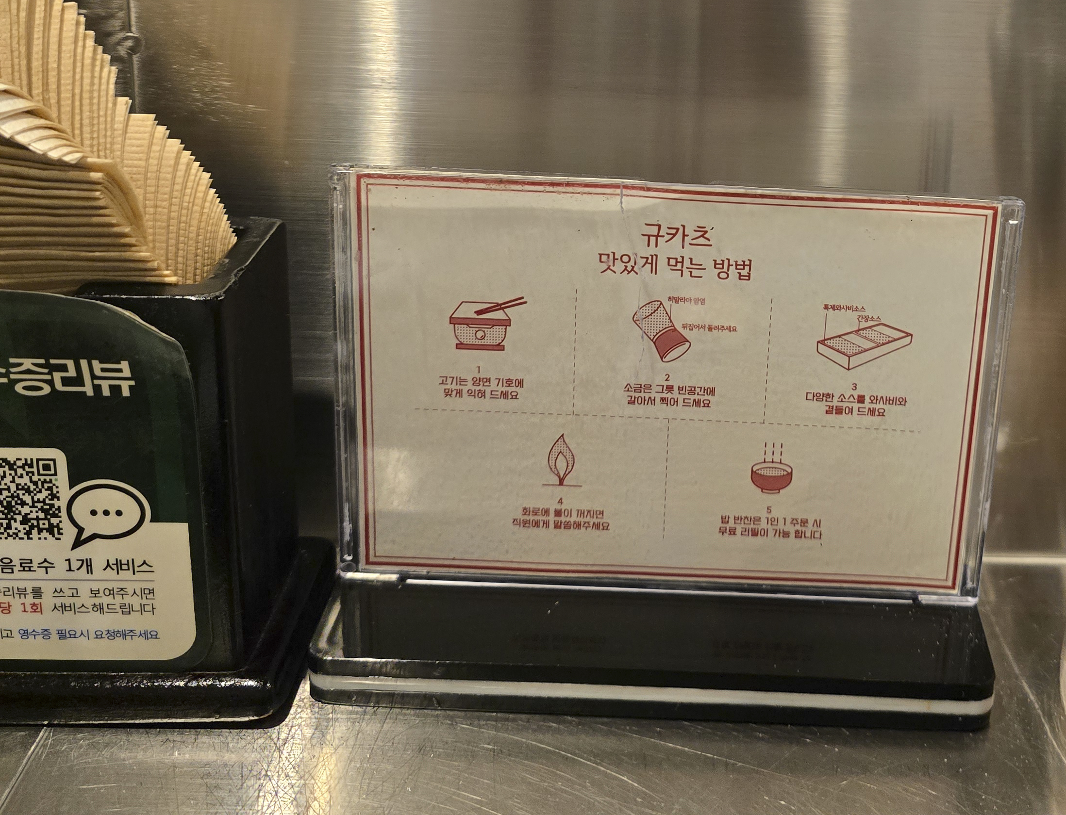 우선 자리에 앉으면 규카츠 맛있게 먹는 방법! 이 적혀 있어요.