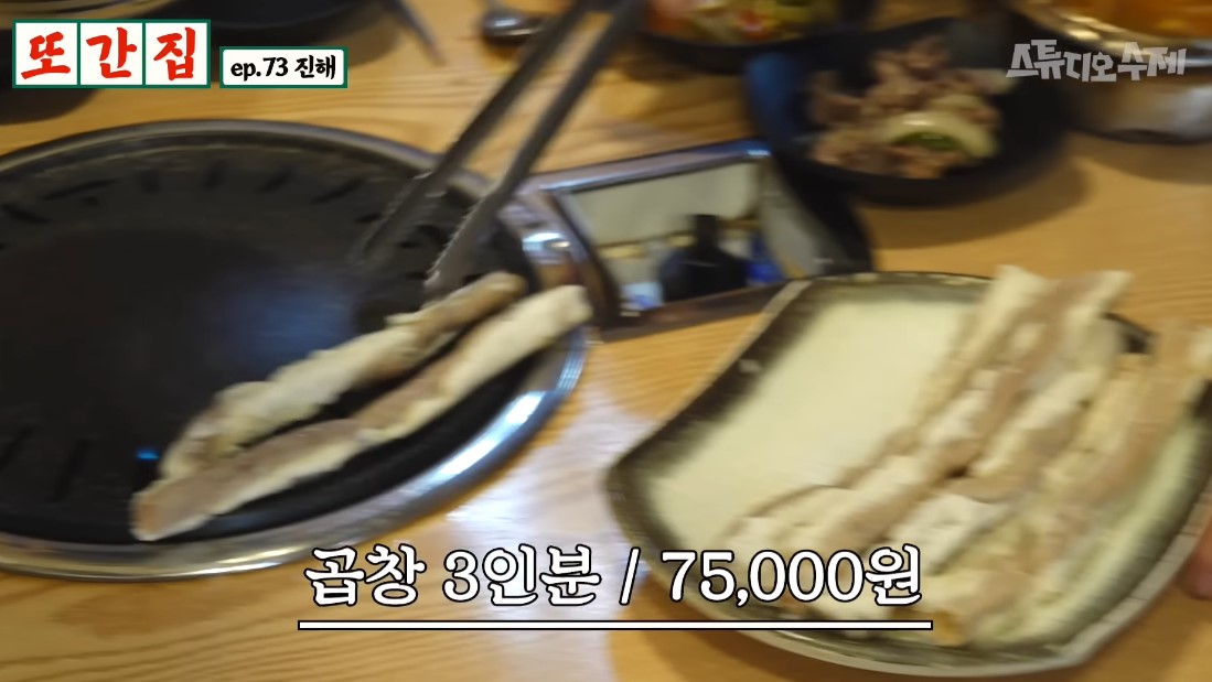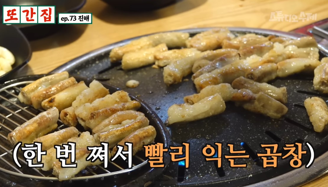 마지막으로 찾아간 곳은 진해 로컬 진해인이라고 자부하시는 분이 추천해준 '문현곱창'입니다. 1등이 자신있다고 자신있게 추천하시는 걸로 맛집 인정! 문현곱창 집은 신선한 곱창과 염통구이가 맛있다고 알려져있는데요. 풍자님이 방문하신 날에는 염통이 품절되서 아쉽게도 못드셨네요. 이글을 보시고 찾아가신다면 꼭 염통구이도 함께 드셔보세요. 신선한 곱창을 한시간 반을 찜통에 쪄서 보관해 놓는데 그러면 부드럽고 냄새도 나지 않는다고 특급 비밀을 알려주시더라구요. 그래서 불판에서 살짝만 구워도 바로 먹을 수 있다고 사장님께서 직접 구워주시면서 말씀하시네요. 진짜 속에 곱이 꽉꽉 들어차있는데 풍자님이 너무너무 고소하고 내장이 질기지 않아 곱이 사라질때쯤 내장껍질도 함께 사라진다고 맛표현을 하는데 너무 먹고싶었어요^^