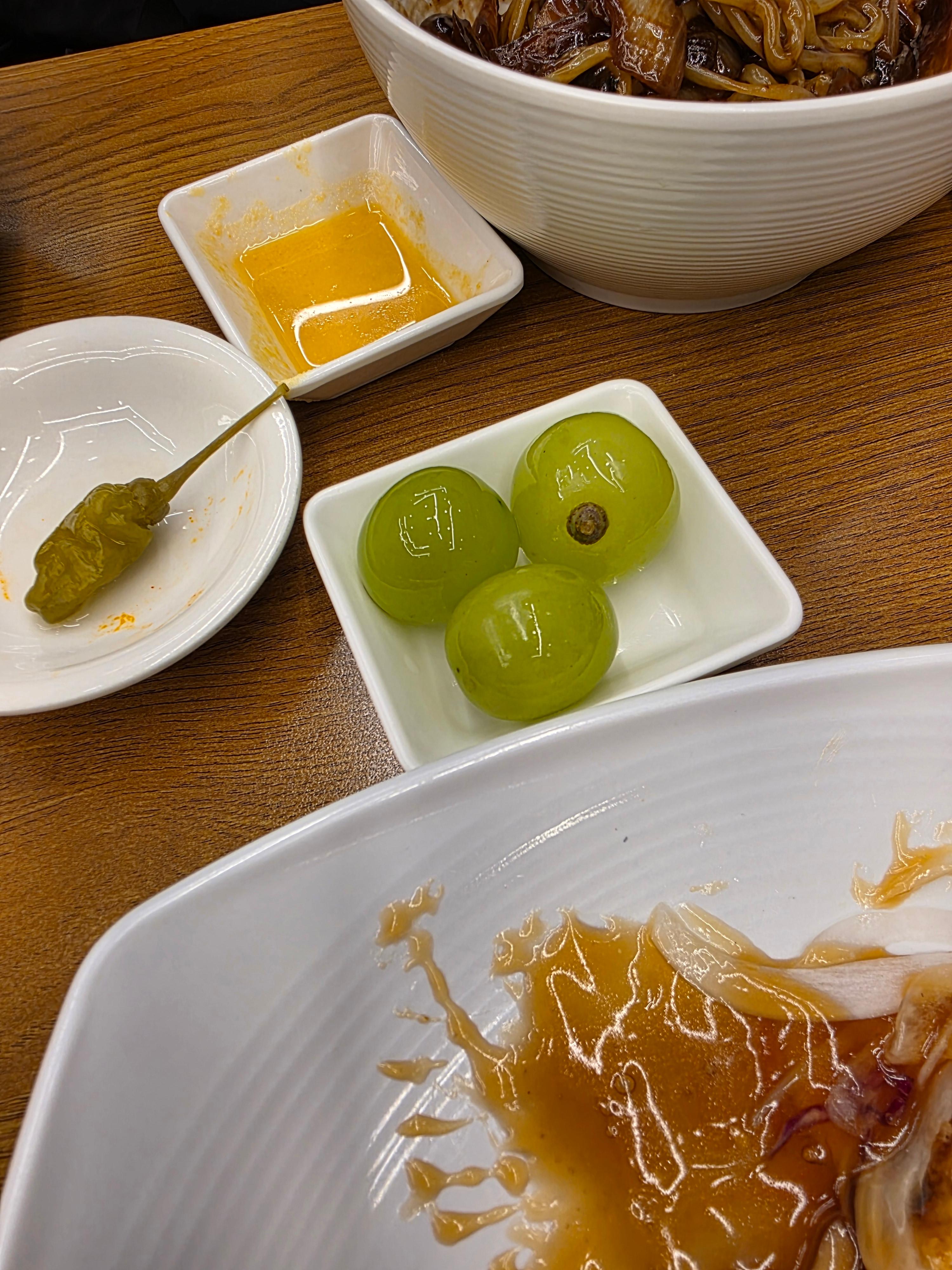 - 후식: 오늘은 샤인머스캣이 나왔어요