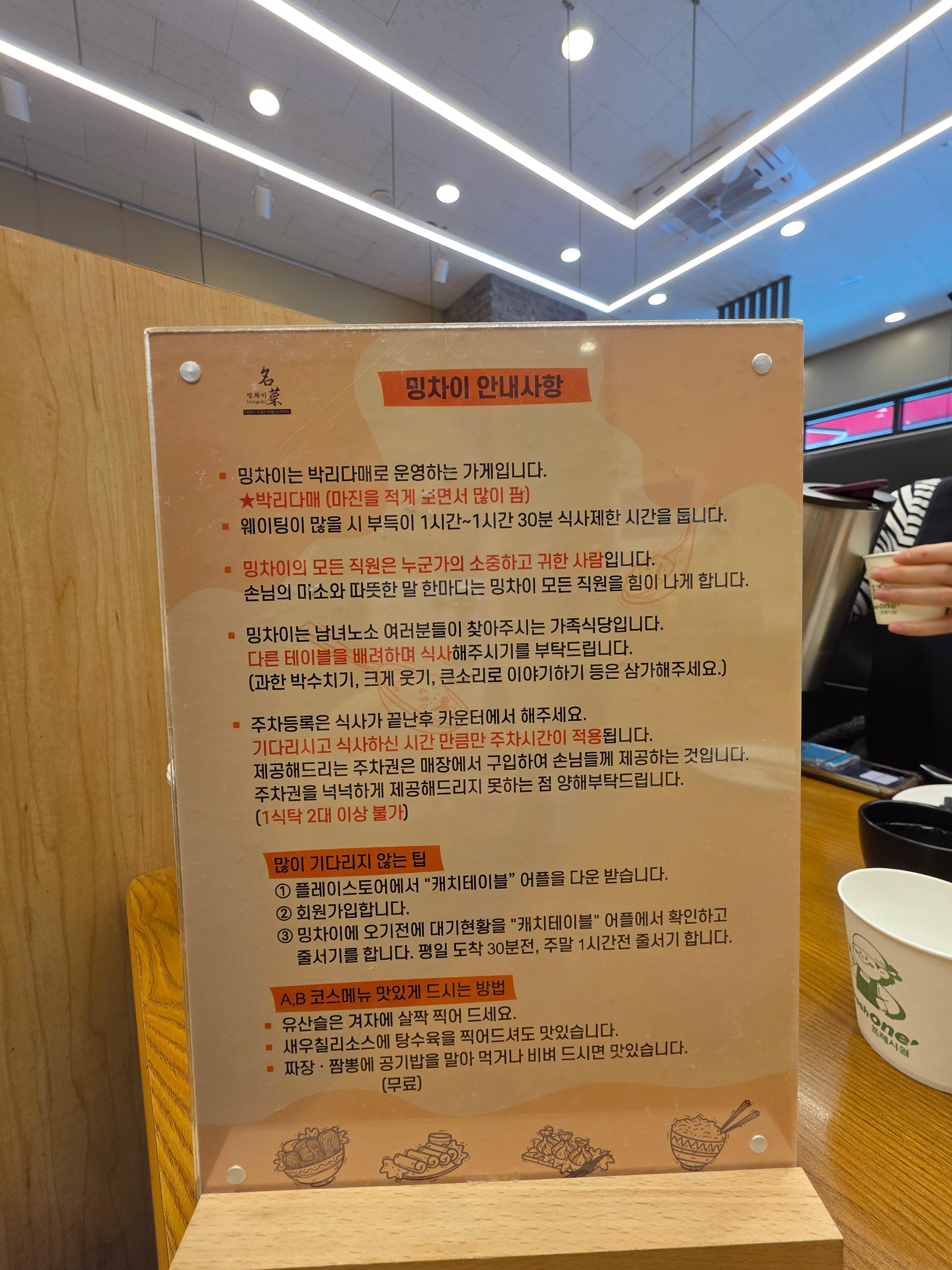 메뉴판 뒷면에 주요사항들이 적혀있네요! 참고해주세요!