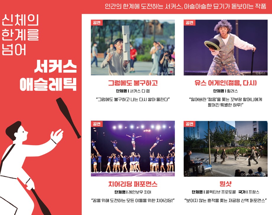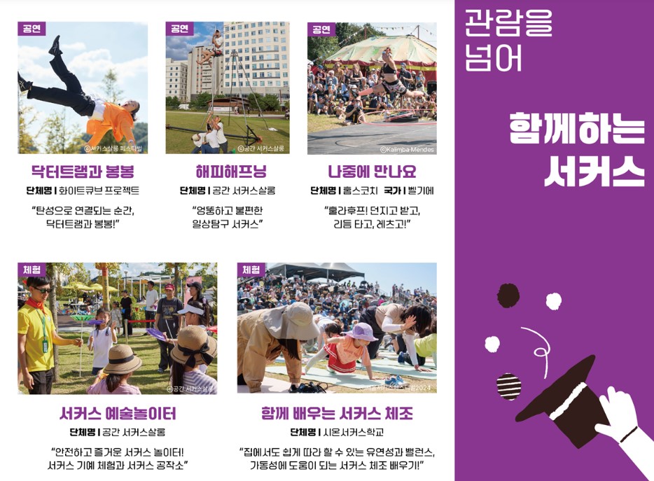 - 내용: 서커스 퍼포먼스, 저글링, 마임, 체험 부스, 거리 공연
