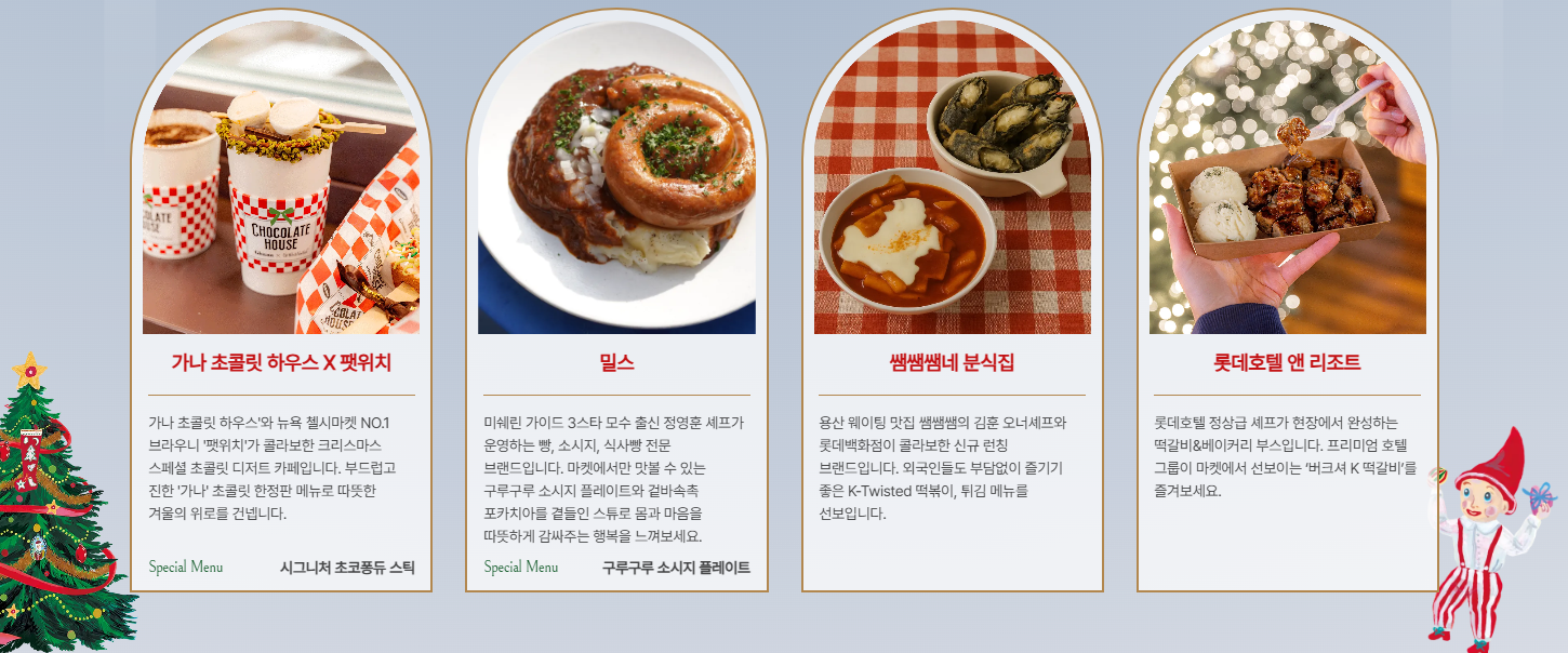 - F&B: 뱅쇼, 츄러스 등 유럽 마켓의 맛을 느낄 수 있는 먹거리 부스