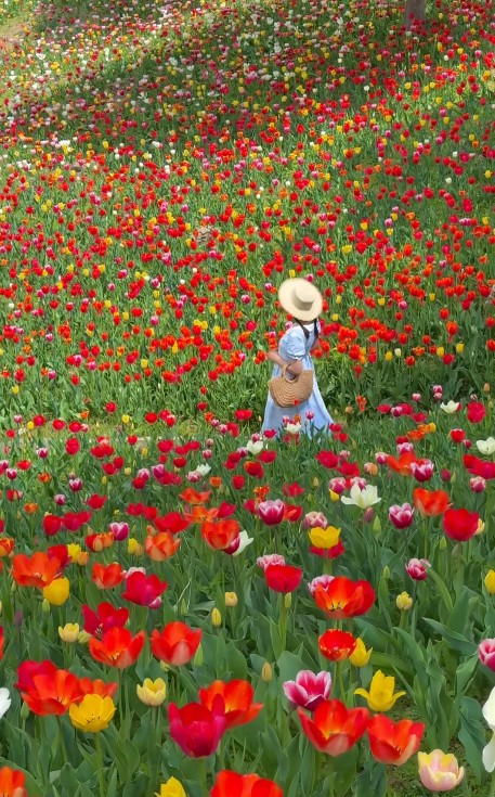알록달록 펼쳐진 튤립 정원, 눈 앞에 끝없이 이어지는 꽃길!