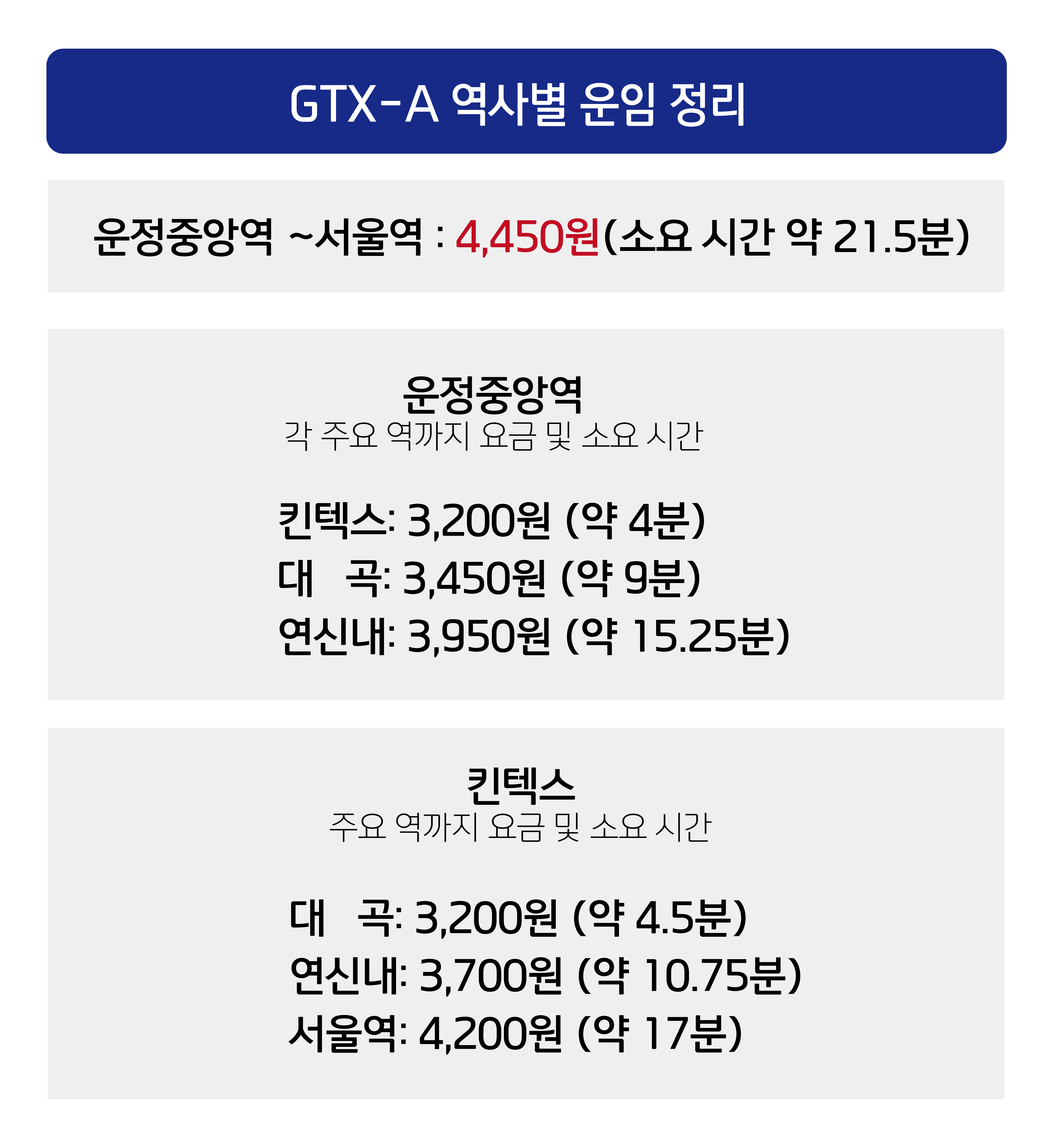 운정중앙역에서 서울역까지는 대략 4,450원 정도 예상된다고 해요. 생각보다 저렴하지 않나요